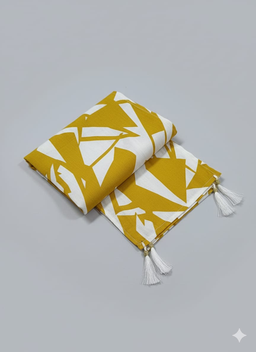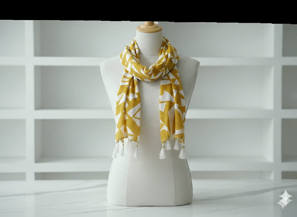 Bright and bold, this abstract yellow scarf is a statement of modern elegance. Its striking geometric pattern in a warm mustard shade brings a lively and artistic touch to any outfit. Light, soft, and easy to style, this scarf blends contemporary design with everyday comfort — perfect for those who love to stand out with effortless charm.