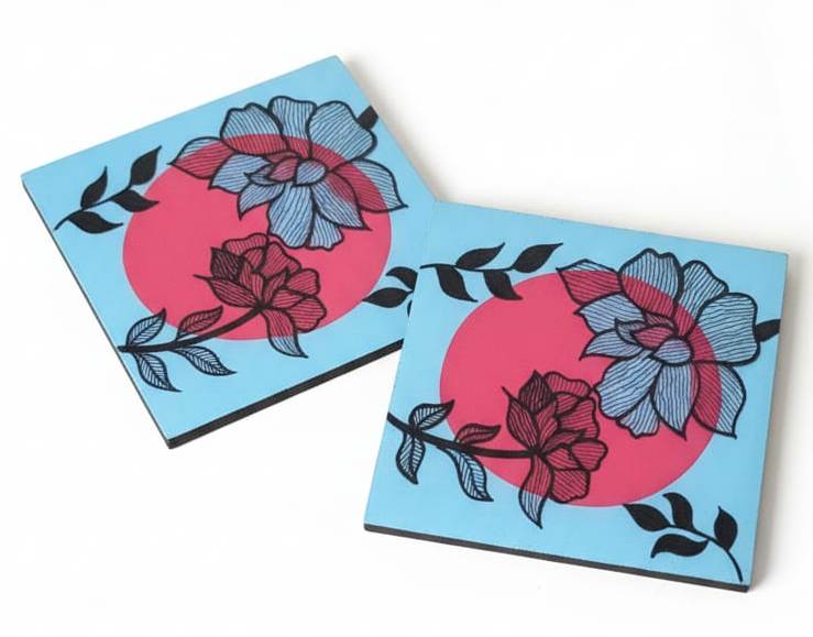 Each Coaster is exquisitely hand-painted design by women artisans. It is filled with fine in-line designs. The painting is then laminated for protection.