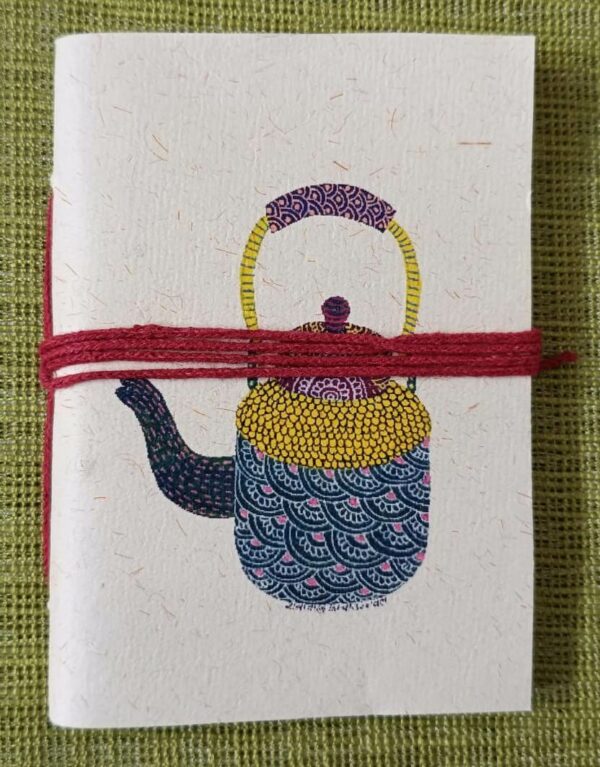 The painting with kettle design is created by our artisans in Gond Art style and is then digitally printed on the cover of the hand made diary.